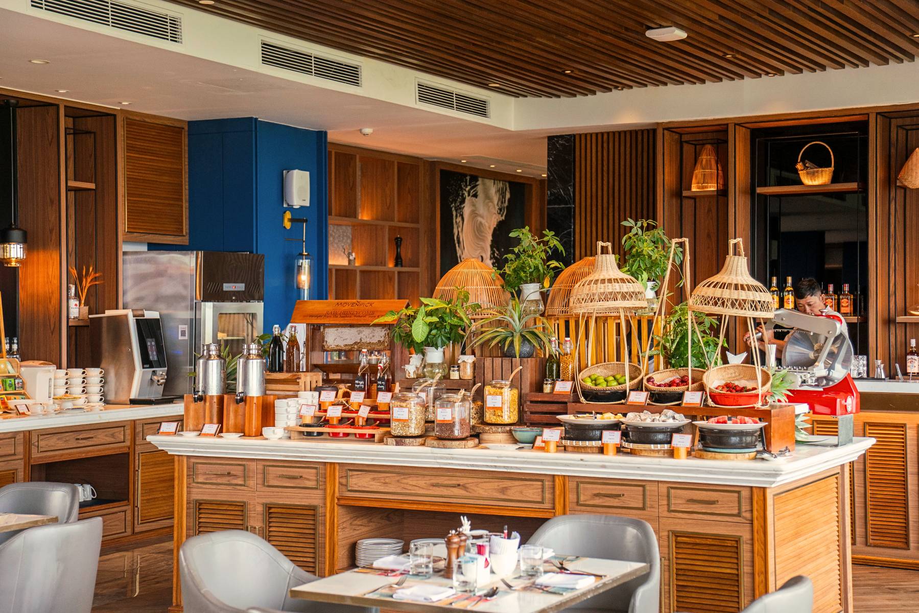 Perched on the 8th floor of Mövenpick Resort Waverly Phu Quoc, Altitude 8 – Sky Bistro invites you to an elevated dining experience, where the boundless sky meets the serene sea. From sunrise to sunset, every moment here is framed by breathtaking panoramic views and a refined sense of tranquility.