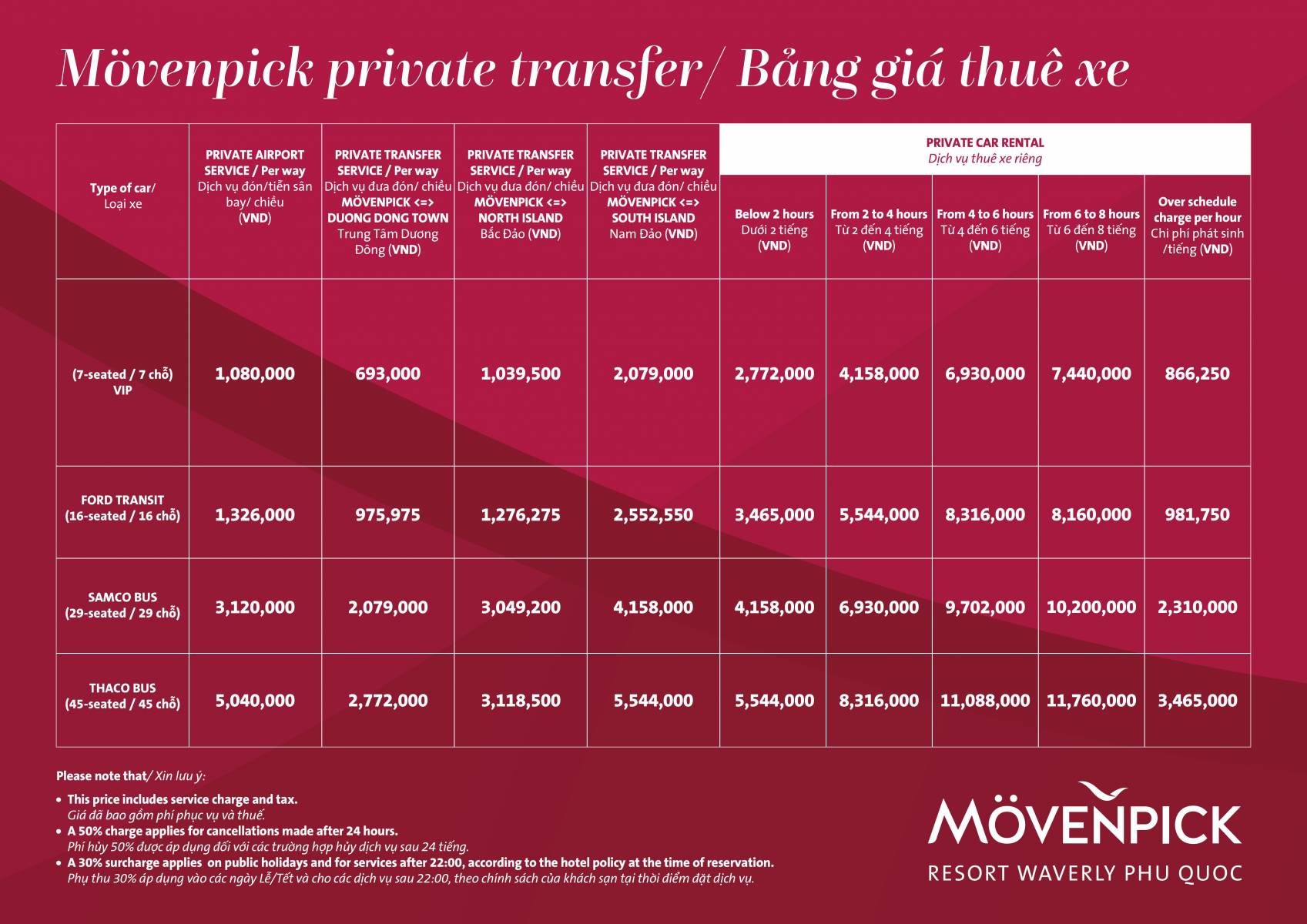 For travelers seeking a more personalized and flexible arrival experience, Mövenpick Phu Quoc offers a comprehensive range of private transfer services that cater to every group size and itinerary. While the shared shuttle is a fantastic complimentary option, a private transfer ensures zero wait time and door-to-door comfort directly upon your landing.