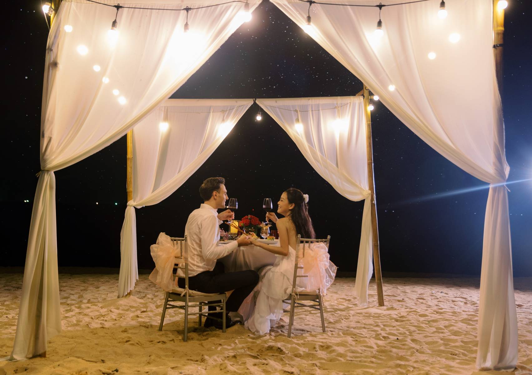 To truly elevate your honeymoon, don’t miss the romantic dinner on the beach.